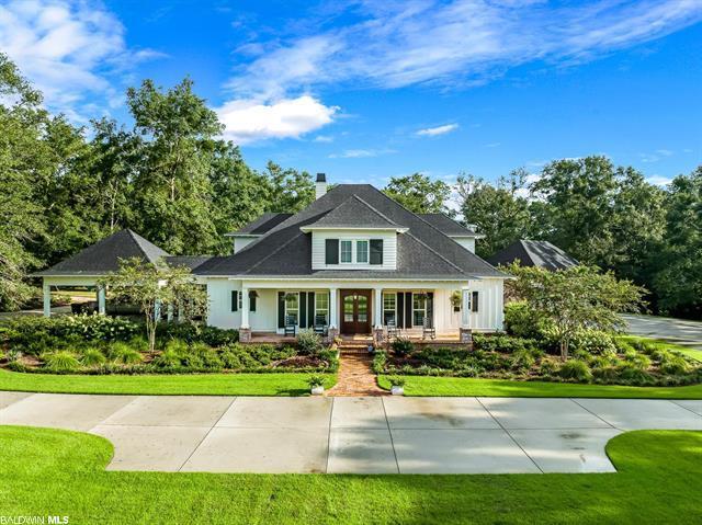 Exceptional, one of a kind, modern, coastal, farmhouse! Located just minutes to downtown Daphne, sitting on 14 fenced acres, bring your horses! Custom designed and built by Frostholm Builders, this home has it all inside and out. Special features include: exposed beams, one-of-a-kind interior doors, hand crafted mantle and hood, special tile and lighting throughout, just to name a few. Large open 14+ft dining area, separate office, see thru brick wood burning fireplace, spectacular kitchen with Wolfe gas cook top, marble counter tops, breakfast room with shiplap accent, large pantry w/stained glass doors and beautiful laundry room w/navy cabinets, plus drop zone and side entrance. Exquisite primary suite with beautiful bathroom and huge closet with built in dresser and crystal chandelier. Upstairs are 3 large bedrooms, one with en-suite bath and the other 2 share full Jack and Jill bath with 2 separate commodes and vanity areas, plus game room and TV den area. Multiple walk-in attic access points upstairs, whole house GENERATOR, and WELL water for irrigation. Step outside on the oversized SCREENED in patio overlooking saltwater, gunite, heated and cooled, POOL with water feature. Additional covered patio space with full OUTDOOR kitchen, fireplace and TV, perfect for football season! Plenty of parking with 3 CAR garage on one end with attached IN-LAW suit, with full bath/bedroom/sitting area/storage room. On the other end of the house is a 2-car, carport, plus circular driveway in between. This property also has a 4-stall BARN with tack room, storage room and half bath, plus a separate huge WORKSHOP with loft area and 2 covered areas to park the toys. Buyer to verify all information during due diligence.