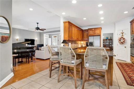 The floorplan of this well-maintained home is sure to please with plantation blinds throughout. The spacious living room has a gas fireplace and is open to the dining room, breakfast room, and kitchen bar with large windows overlooking the screened porch and huge fenced backyard and pool area.