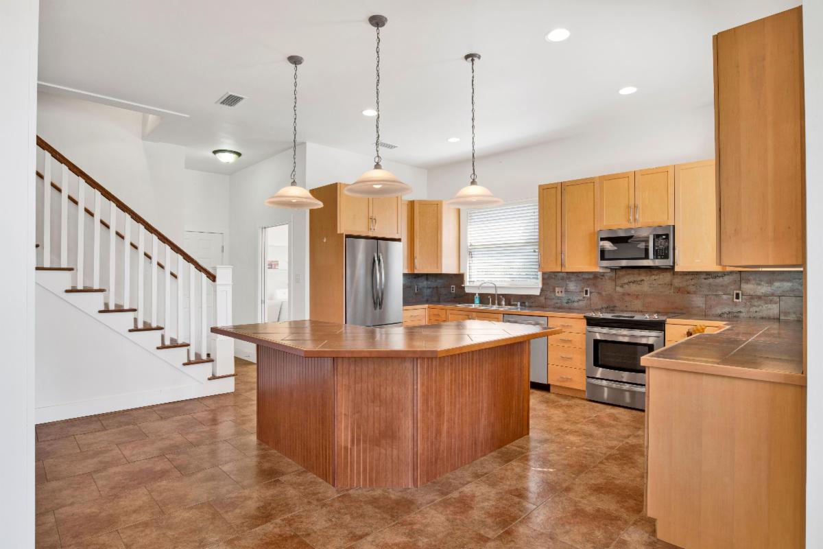 The "shot gun" style floor plan provides and open concept kitchen with granite countertops, stainless steel appliances, bar seating and a breakfast area, open to the living room with hardwood floors. NO CARPET and house is GOLD FORTIFIED. 3 bedrooms, 2.5 baths, with a jack and jill bathroom between two bedrooms, spacious primary suite, and a 1/2 bath perfect for guests!