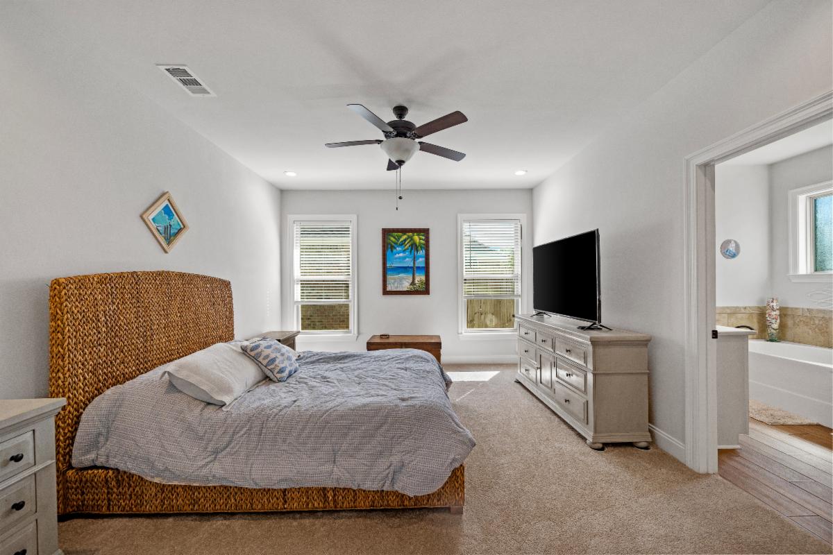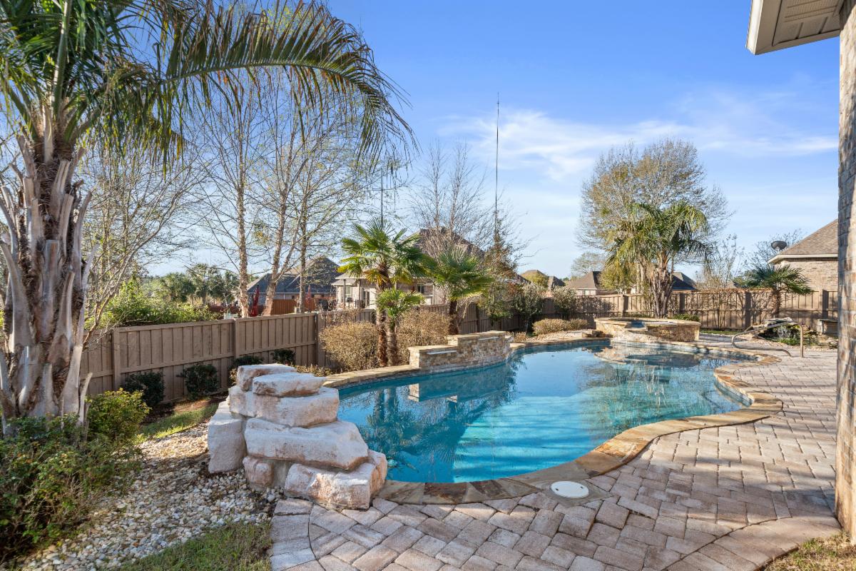Three additional bedrooms are located toward the front of the home, along with a full guest bathroom, offering flexibility for family, guests, or a home office. Residents of Jubilee Farms enjoy multiple COMMUNITY EVENTS throughout the year, plus RESORT-STYLE AMMENITIES including pools with waterslide, splash pad, clubhouse with fitness center, scenic walking trails (5 miles long), stocked lakes, playground, fire pit, and beautiful green spaces throughout the community. Located in the heart of Daphne with easy access to I-10, shopping, dining, and the Eastern Shore. This one won't last long!