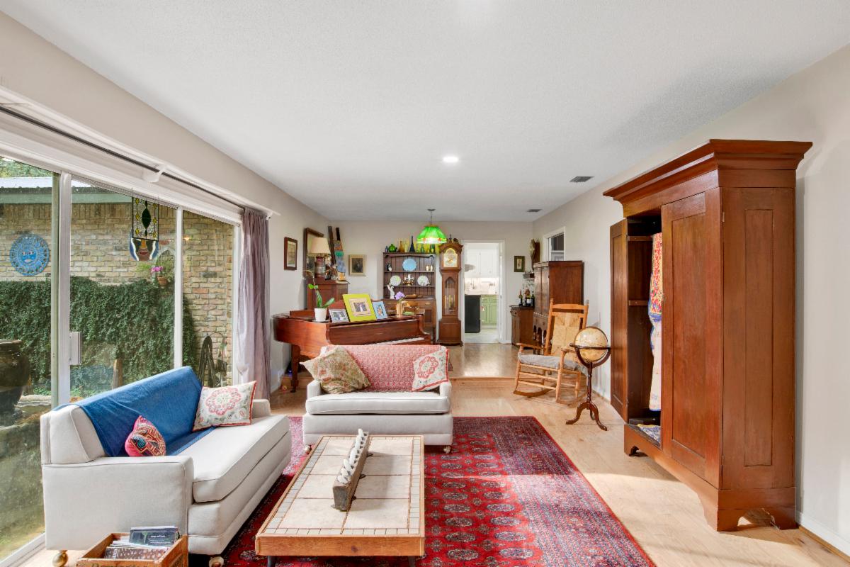 Light spills through large windows, highlighting the seamless flow between living, dining, breakfast, and kitchen areas—perfect for family gatherings or entertaining friends.