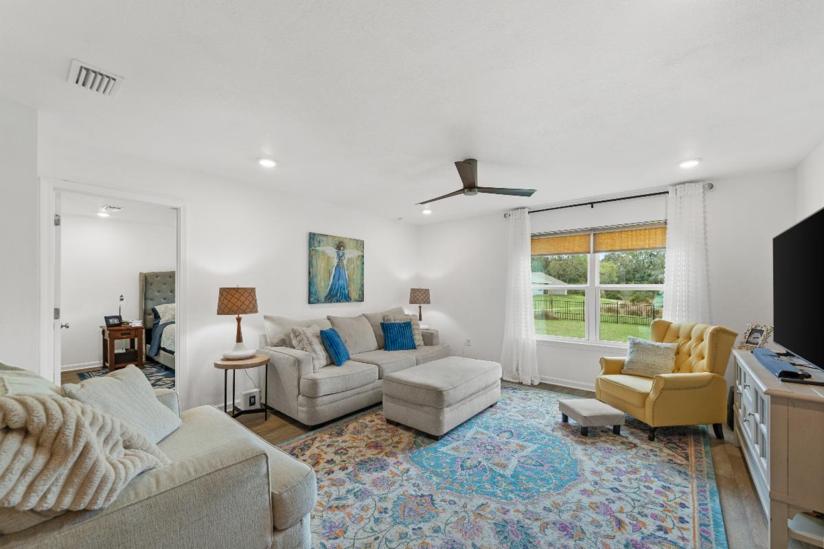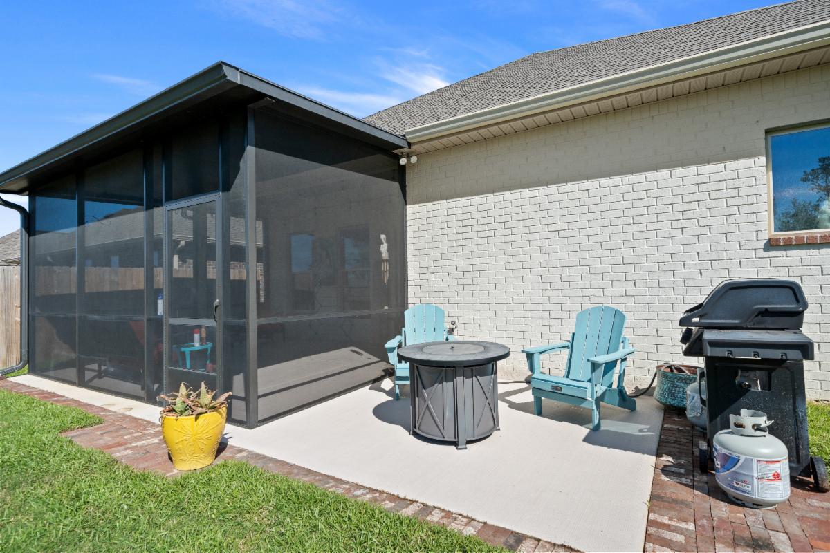 The primary suite offers plenty of space with a LARGE WALK-IN CLOSET and a beautiful bathroom featuring double vanities, garden tub, separate tiled shower with frameless glass door, and upgraded fixtures. Enjoy outdoor living year-round from the LARGE SCREENED IN BACK PORCH, perfect for relaxing while enjoying the added privacy of no homes behind you.