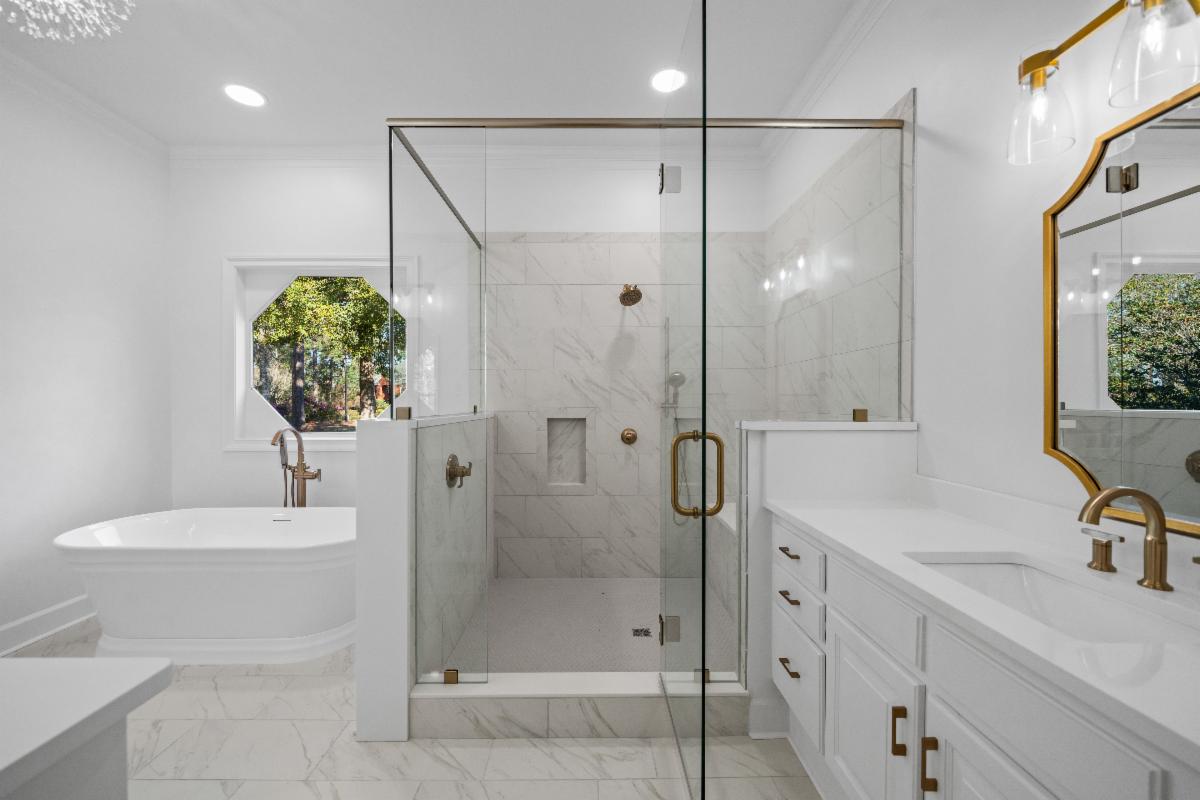 2026 improvements include: Completely RENNOVATED light and bright PRIMARY BATHROOM - with amazing walk- in shower, stand-alone tub, new flooring, fixtures, mirrors, vanity, & water closet, with large walk-in closet and more! ALL NEW PAINT and CARPET throughout the entire home, along with new exterior trim paint and columns replaced.